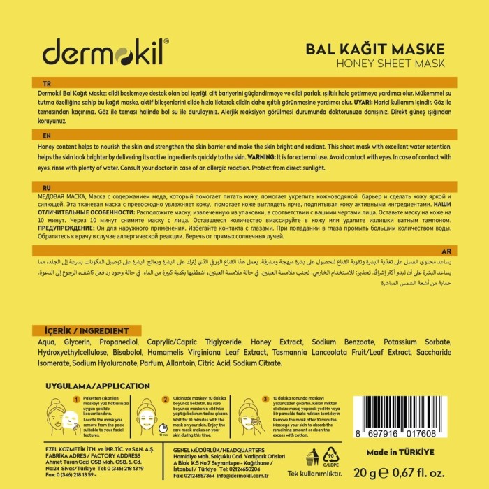 يعتبر هذا الماسك مصدراً غنياً بالطاقة للبشرة التي فقدت بريقها. تعمل خلاصة العسل الطبيعية على تغذية طبقات الجلد العميقة وتعزيز حاجز الحماية الطبيعي. بفضل تقنية الورق المتطورة، يتم نقل المكونات الفعالة بسرعة إلى المسام، مما يساعد في شد البشرة وتقليل مظهر الخطوط الدقيقة. يترك هذا الماسك وجهك منتعشاً، ناعماً، ومشعاً بالنضارة.