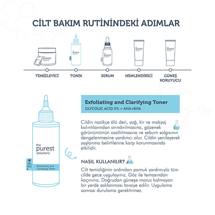 يعمل تونر ذا بيورست سوليوشنز المنقي كخطوة أساسية في روتين العناية بالبشرة الدهنية والمختلطة. بفضل احتوائه على حمض الجليكوليك (AHA)، يقوم بتقشير سطح الجلد بلطف لإزالة الخلايا الميتة والشوائب التي تسد المسام، مما يقلل من ظهور الحبوب والرؤوس السوداء ويمنحك بشرة ناعمة وأكثر صفاءً.