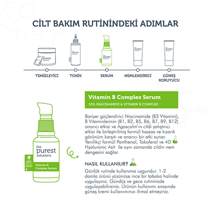 • Niacinamide (Vitamin B3): يحسن مرونة الجلد ويقلل من الاحمرار والتهيج.